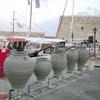 Der größte Pithari Kretas wurde im Rahmen des ersten Festivals traditioneller Keramik im Hafen von Heraklion ausgestellt wo er auch in einem eigens dafür konstruierten Flüssiggasbrennofen gebrannt wurde.